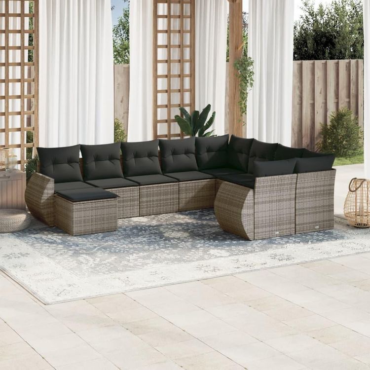 Salon de jardin avec coussins 10 pcs gris resine tressee
