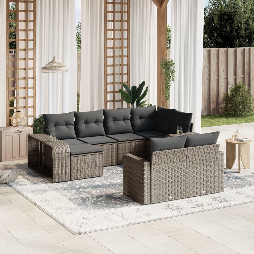 Salon de jardin avec coussins 10 pcs gris resine tressee