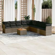 Salon de jardin avec coussins 10 pcs gris resine tressee