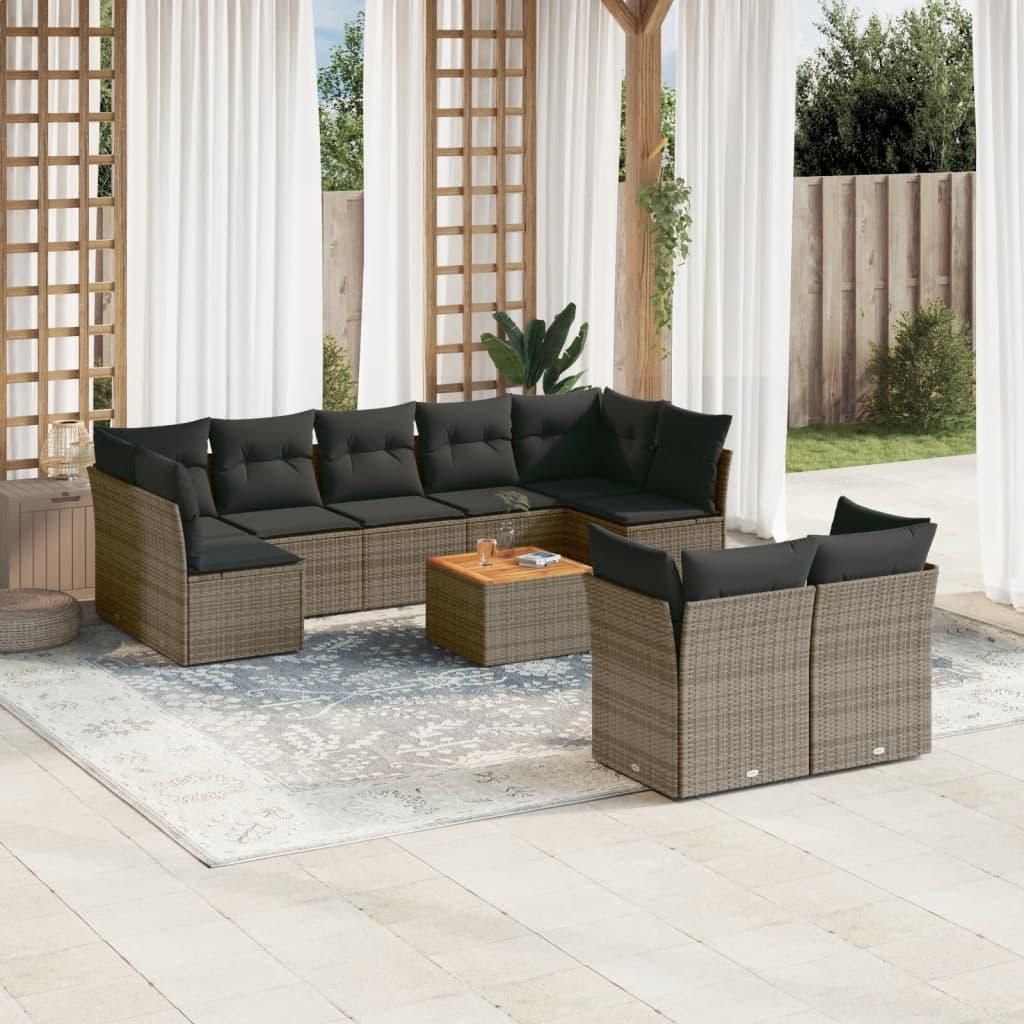 Salon de jardin avec coussins 10 pcs gris resine tressee