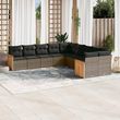 Salon de jardin avec coussins 10 pcs gris resine tressee