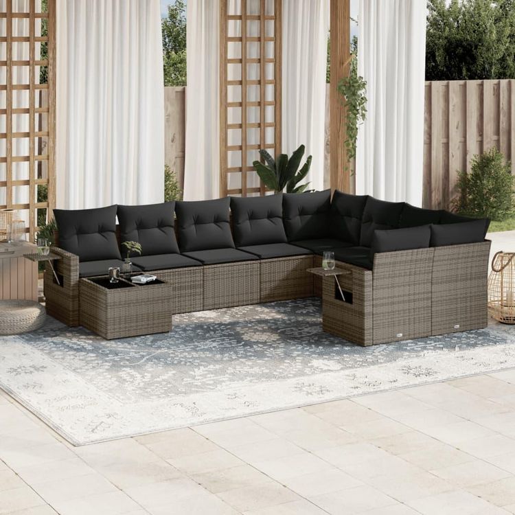 Salon de jardin avec coussins 10 pcs gris resine tressee