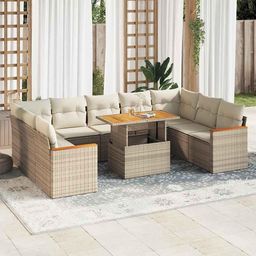 Salon de jardin avec coussins 10pcs beige resine tressee acacia