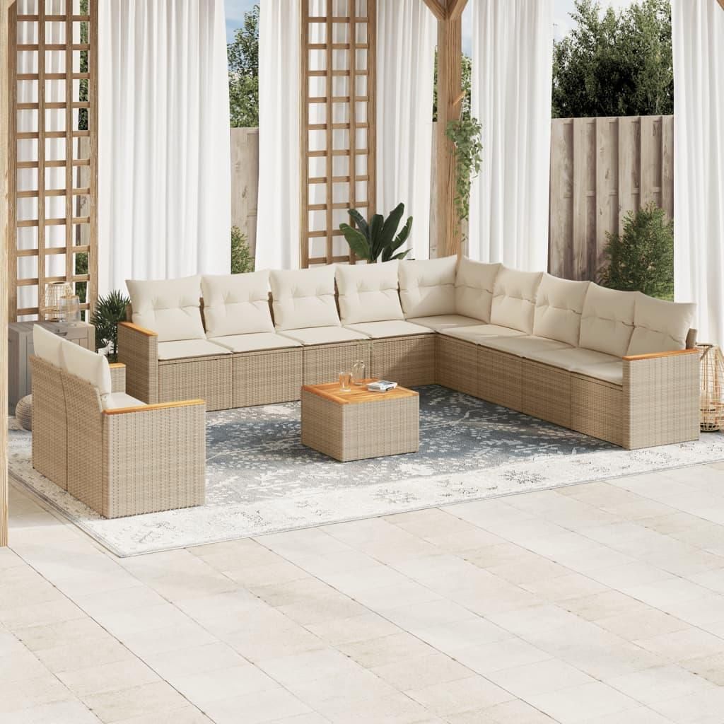 Salon de jardin avec coussins 12 pcs beige resine tressee