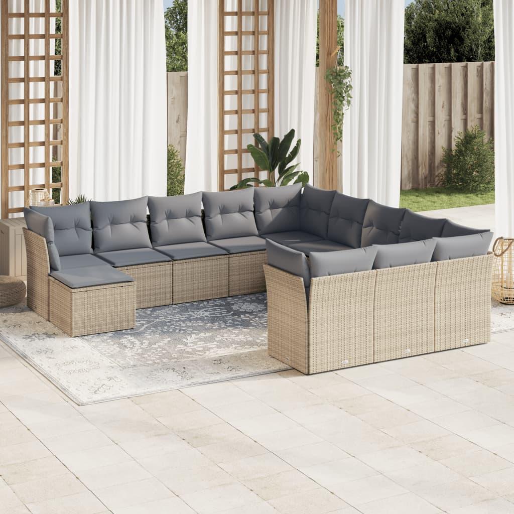 Salon de jardin avec coussins 12 pcs beige resine tressee