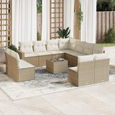 Salon de jardin avec coussins 12 pcs beige resine tressee