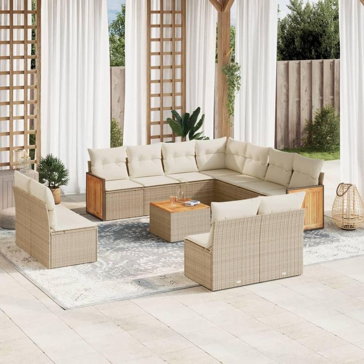 Salon de jardin avec coussins 12 pcs beige resine tressee