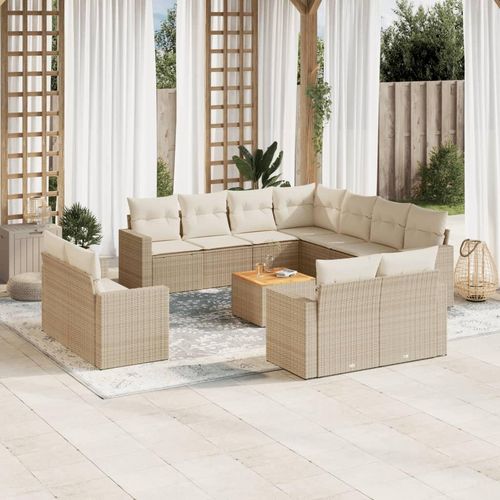 Salon de jardin avec coussins 12 pcs beige resine tressee