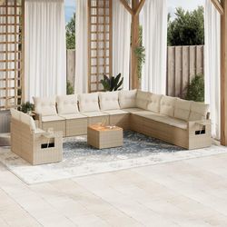 Salon de jardin avec coussins 12 pcs beige resine tressee