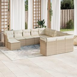 Salon de jardin avec coussins 12 pcs beige resine tressee