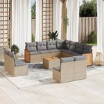Salon de jardin avec coussins 12 pcs beige resine tressee