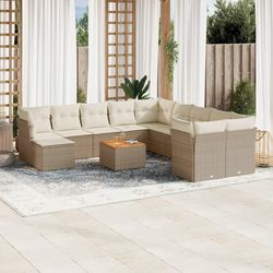 Salon de jardin avec coussins 12 pcs beige resine tressee
