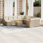 Salon de jardin avec coussins 12 pcs beige resine tressee