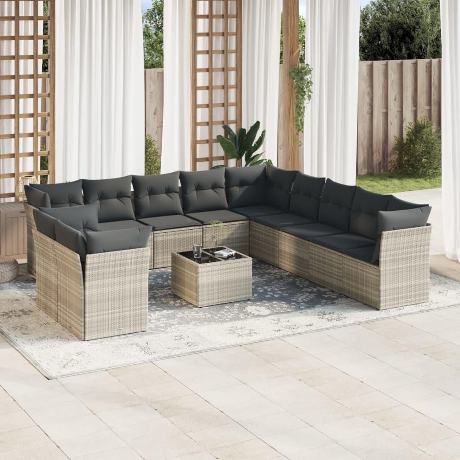 Salon de jardin avec coussins 12 pcs gris clair resine tressee