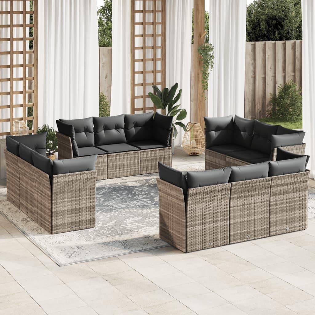 Salon de jardin avec coussins 12 pcs gris clair resine tressee