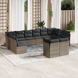 Salon de jardin avec coussins 12 pcs gris resine tressee
