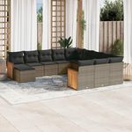 Salon de jardin avec coussins 12 pcs gris resine tressee