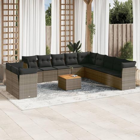 Salon de jardin avec coussins 12 pcs gris resine tressee