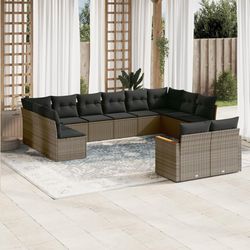 Salon de jardin avec coussins 12 pcs gris resine tressee