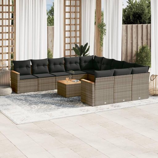 Salon de jardin avec coussins 12 pcs gris resine tressee