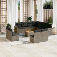 Salon de jardin avec coussins 12 pcs gris resine tressee
