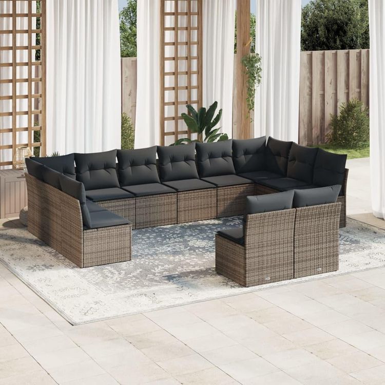 Salon de jardin avec coussins 12 pcs gris resine tressee