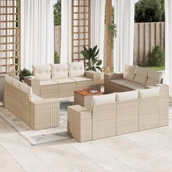 Salon de jardin avec coussins 13 pcs beige resine tressee
