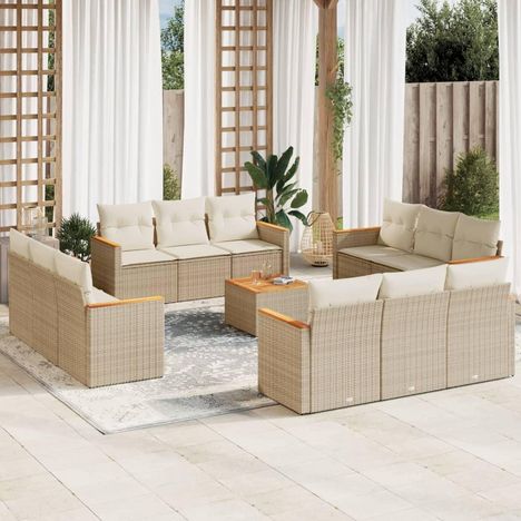 Salon de jardin avec coussins 13 pcs beige resine tressee