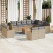 Salon de jardin avec coussins 13 pcs beige resine tressee