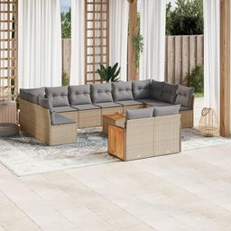 Salon de jardin avec coussins 13 pcs beige resine tressee