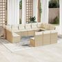 Salon de jardin avec coussins 13 pcs beige resine tressee