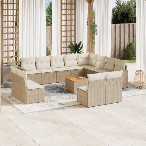 Salon de jardin avec coussins 13 pcs beige resine tressee