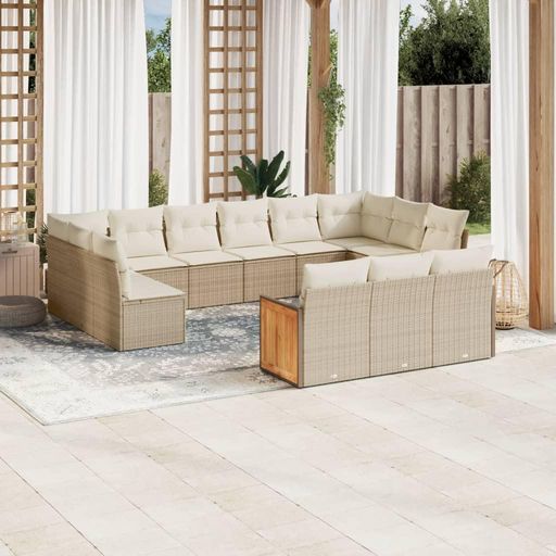 Salon de jardin avec coussins 13 pcs beige resine tressee