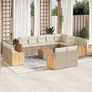 Salon de jardin avec coussins 13 pcs beige resine tressee