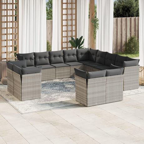 Salon de jardin avec coussins 13 pcs gris clair resine tressee
