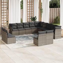 Salon de jardin avec coussins 13 pcs gris resine tressee