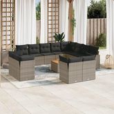 Salon de jardin avec coussins 13 pcs gris resine tressee