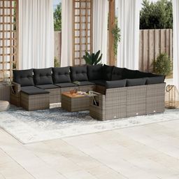 Salon de jardin avec coussins 13 pcs gris resine tressee