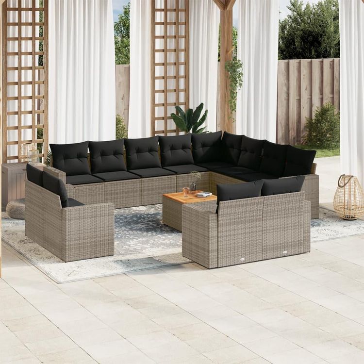 Salon de jardin avec coussins 13 pcs gris resine tressee