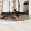 Salon de jardin avec coussins 13 pcs gris resine tressee