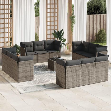Salon de jardin avec coussins 13 pcs gris resine tressee