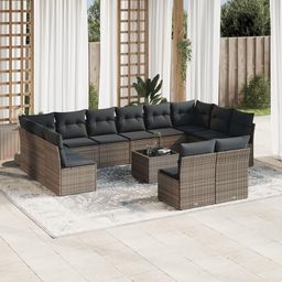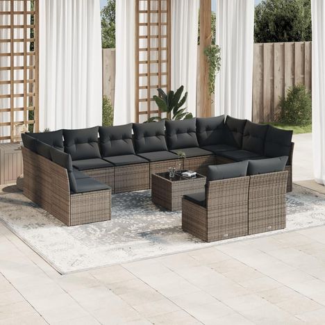 Salon de jardin avec coussins 13 pcs gris resine tressee