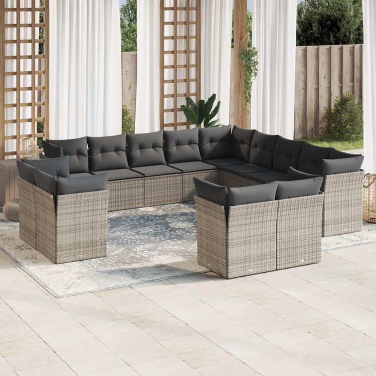Salon de jardin avec coussins 13 pcs gris resine tressee