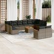 Salon de jardin avec coussins 13 pcs gris resine tressee