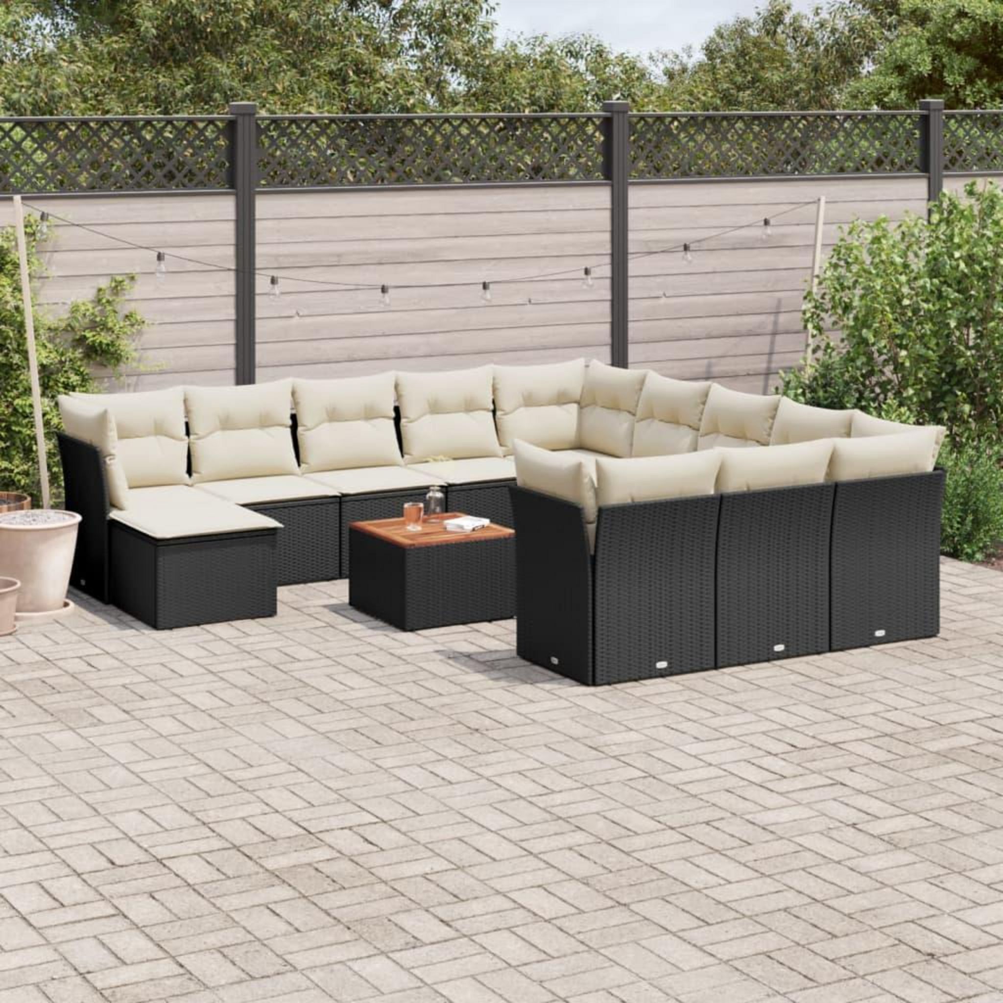 Salon de jardin avec coussins 13 pcs noir resine tressee