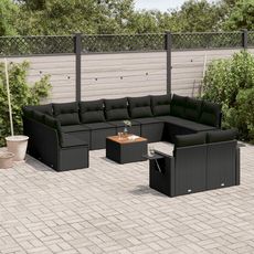 Salon de jardin avec coussins 13 pcs noir resine tressee
