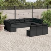 Salon de jardin avec coussins 13 pcs noir resine tressee