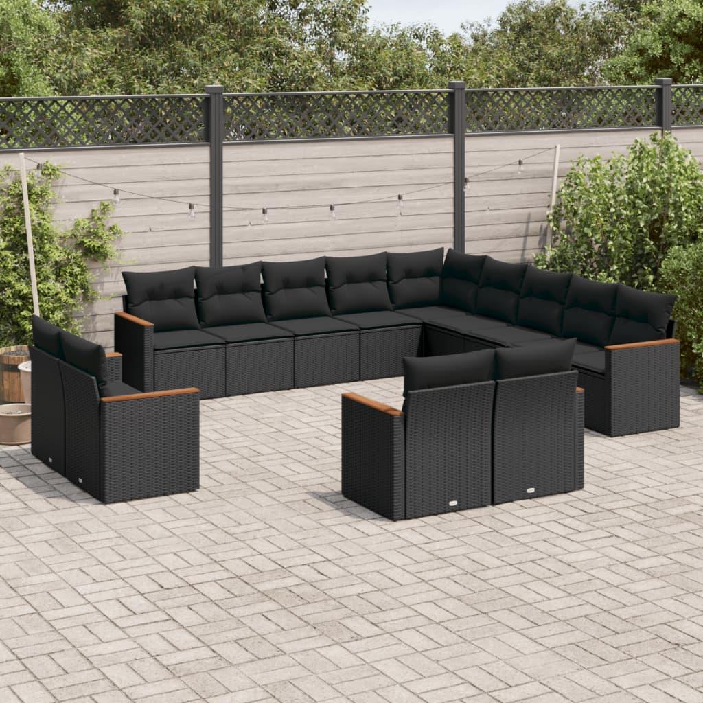 Salon de jardin avec coussins 13 pcs noir resine tressee