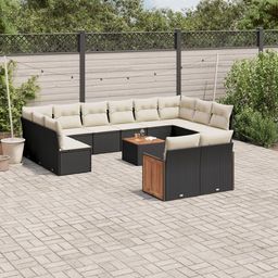 Salon de jardin avec coussins 13 pcs noir resine tressee