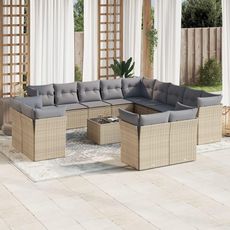 Salon de jardin avec coussins 14 pcs beige resine tressee